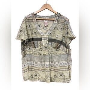 Vintage Faded Glory Sheer Green All Over Print Baby Doll Top Size 18/20 90s Y2k