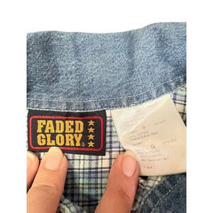 Vintage Faded Glory Sleeveless Shirt Womens Size Large Plaid Grunge Button Front