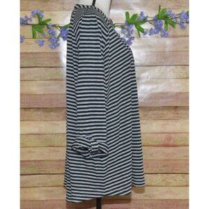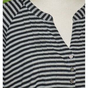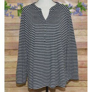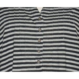 Vintage Faded Glory Women's Gray Striped V-Neck Blouse 4X Long Roll Tab Sleeves