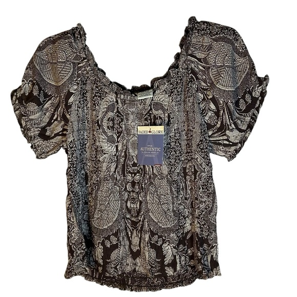 Vintage Faded Glory Y2K Top Size L Forest Fairy Grunge Babydoll Scrunched Brown