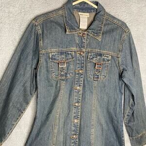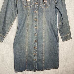 Vintage Faded Glory womens long sleeve denim jean button up dress y2k collar L