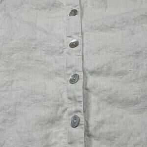 Vintage Fads Full Button-Down Dress 100% Linen Minimalist Collared Size 12P READ. All buttons present and functional. They have a gorgeous iridescent color to them, much like a Capiz shell.