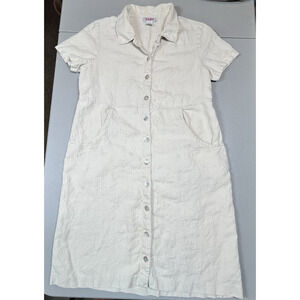 Vintage Fads Full Button Down Dress 100% Linen Minimalist Collared Size 12P READ