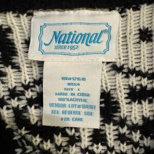 Vintage Fair Isle Grandma Sweater Cardigan Black White and Blue Size Large