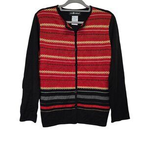 Vintage Fair Isle Granny Core Holiday Christmas Womens Striped Cardigan Sweater S
