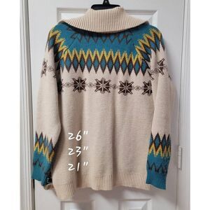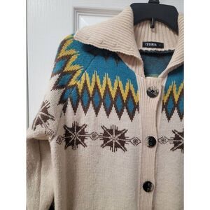 Vintage Fair Isle Nordic Knit Boho Cardigan L