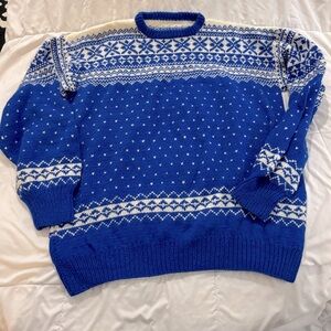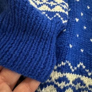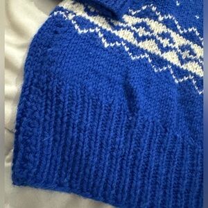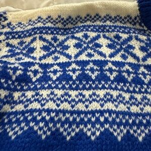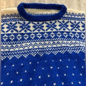 *Royal blue and cream snowflake & heart pattern on both sides as well as sleeves.