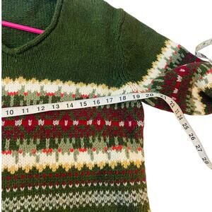 Vintage Fair Isle Womens Pullover Sweater Cozy Knit Holiday Cottagecore Green