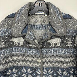 Vintage Fair Isle Wool Jacket M Bear Trees Shacket Button Down Gray Blue