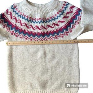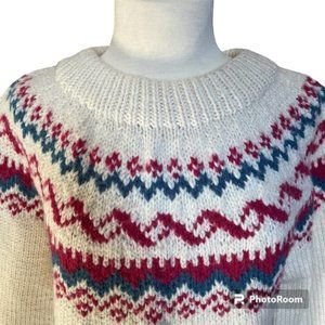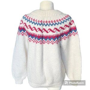 Vintage Fair isle Icelandic-Chunky-hand-knit-white -Fisherman Sweater. size XL