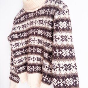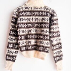 Vintage Fairisle Ivory Brown Icelandic Wool Turtleneck Sweater S.