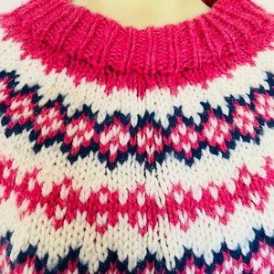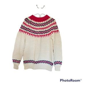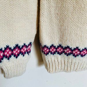 Vintage 90's Fairisle Icelandic-Chunky-hand-knitted-White-Retro-Winter-Fisherman Crew Neck-Women's Pullover-Jumper Sweater-Size Large.