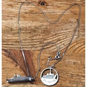 Vintage Fairwind Cruise Ship Silver Charms on Necklace Cunard Set of 2