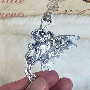 Vintage Fairy Brooch Pin with Green and Blue Rhinestone Accents Silver Tone