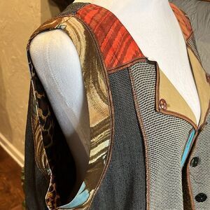 Vintage Faith Patchwork Embroidered Animal/Multi Print Vest, XL!