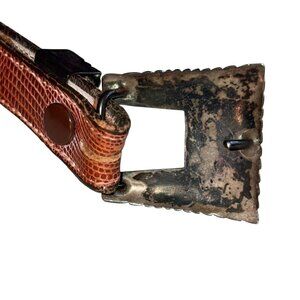 Vintage Falconhead Brown Leather Silver Belt Sz 34 Original Embossed Snakeskin