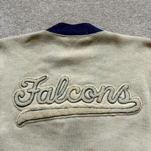Vintage Falcons Letterman Sweater Mens Medium Cardigan Blue Chenille Patches 60s