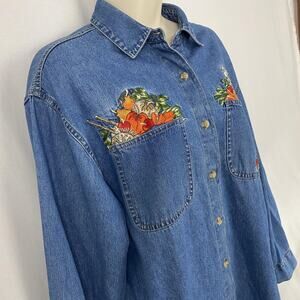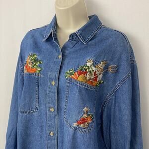Vintage Fall Autumn Denim Shirt Womens Medium Embroidered Pumpkins Halloween 90s