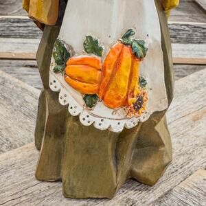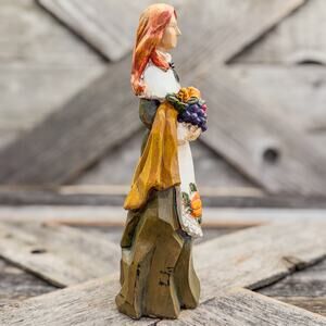 Vintage Fall Harvest Pilgrim Woman Figurine w/ Basket of Garden Harvest, 8"H