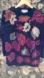 The perfect vintage fall sweater! Features thick embroidered autumn leaves on a navy blue background.
