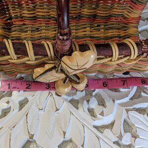 Picturing the Vintage Fall Napkin Holder Basket with Leaf Decor.