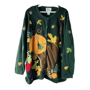 Vintage Fall Pumpkins Leaves All Over Knit Cardigan Sweater