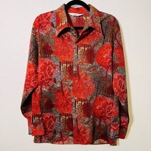 Vintage Fall Tree Scene Button Down Casual Shirt Large