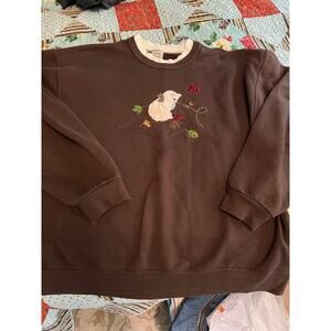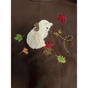 Vintage Fall leaves cat theme brown pullover sweatshirt Grannycore