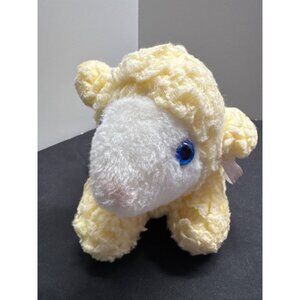 Vintage Fan Fair Wind-Up Yellow Lamb Musical Mary Had A Little Lamb Blue Eyes Pl
