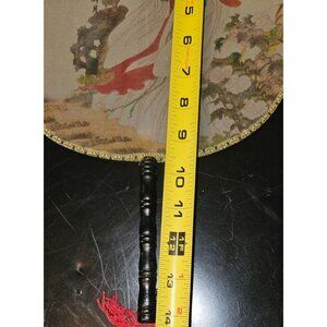 No visible flaws. Round fan diameter approx. 8 inches; bamboo handle length approx. 6 inches.