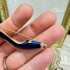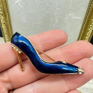 Vintage Fancy Enamel Blue High Heel Shoe Brooch With Crystal Rhinestones Pin