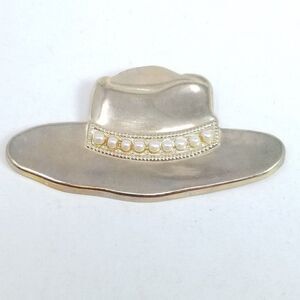 Vintage Fancy Hat Scarf Clip Brooch Gold Tone Faux Pearl Detail, Retro 80s Style