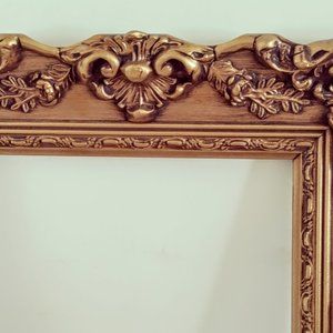 Solid Wood Ornate Gold Picture Frame. Vintage Fancy Wooden Frame measures 15" X 13" inches and has opening for size 10" X 8" inch photo. Please checkout the pictures for descriptions and conditions. So you can make a decision on what you will be receiving and Thanks for stopping by!