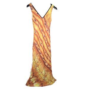 Vintage Fantasea Y2K Brown Yellow Safari Animal Print VNeck Fairy Maxi Dress USA