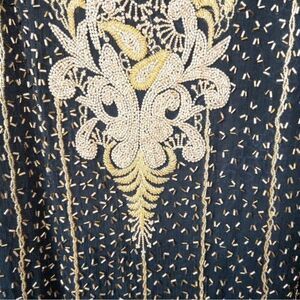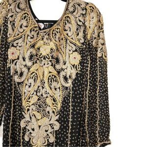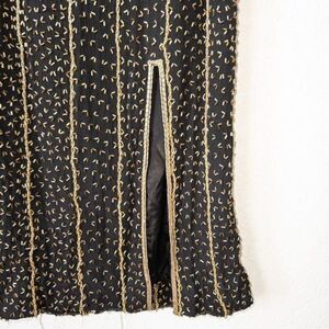 Vintage Fantasy by Lisa Kane Black & Gold Fully Beaded Silk Maxi Dress Small