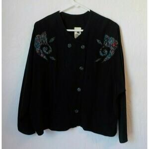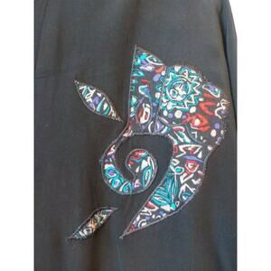 Vintage Fantazia Black Button Up Blouse Women size Large Floral Buttons Rayon