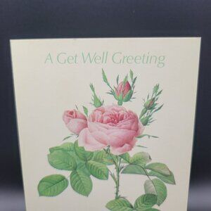 This unused vintage get well card features a delicate pink rose design, perfect for sending heartfelt wishes. A timeless keepsake for any occasion, it's ready to bring joy to someone's day.