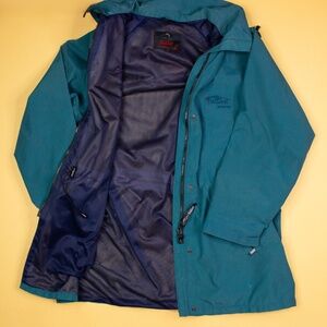 Vintage Far West Gortex Green Teal Hooded Rain Jacket Women's Size L