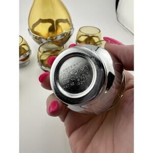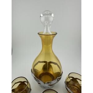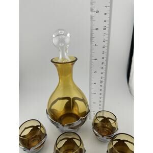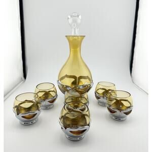 Vintage Farber Brothers Amber Glass Chrome Art Deco Decanter and 6 Glasses
