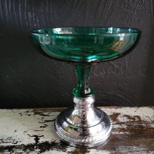 Vintage Farber Krome Kraft Green Glass Compote / Candle Holder Screw on Base