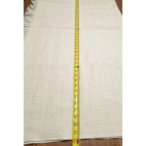 Vintage Faribault Woven Throw Blanket Faribo Fringe Cream Afghan Lap Wool 48x58