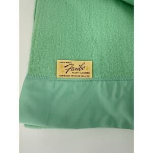 Vintage Faribo Mint Green Full Double Satin Trim Wool Blanket