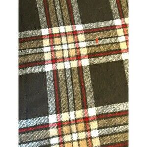 This vintage Faribo wool plaid throw blanket is a beautiful addition to any collection. The blanket features a square shape and a reversible design, making it perfect for any room in the house. The brown color and plaid pattern give it a classic, timeless look, while the fringed edges add a touch of elegance.