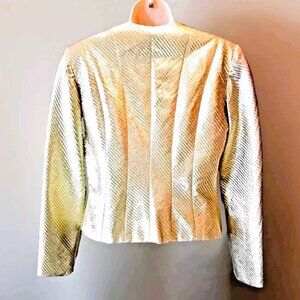 Vintage Farinae Collections Gold Pleated Full Zip Blazer Jacket Size 8 Evening