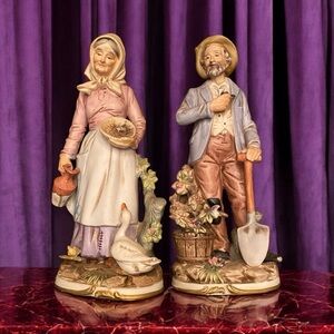 Vintage Farmers HOMCO #8816 Old Man and Old Woman - 14” Figurines - Beautiful!!