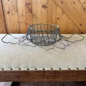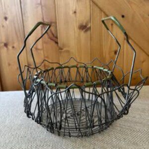 Vintage Farmhouse Collapsilbe Wire Egg Basket with Green Trim