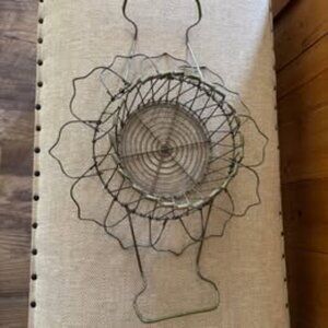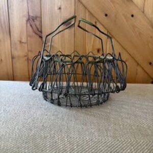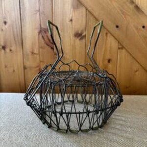 This vintage farmhouse egg basket is a perfect addition to use as decor or as a function piece. The collapsible wire design does allow the piece to lay almost flat when not in use.