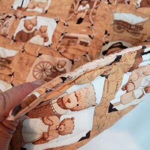 Vintage Farmhouse Homespun Bear Baby Blanket Hand Tied Quilt Homemade Nursery