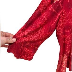 Vintage Fashion Bug Top Blouse Red 90s Y2K 3/4 Sleeves XL Fairycore Glitter