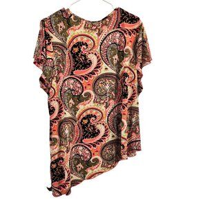 Vintage Fashion Bug Top Womens Size 22/24 3X Pink Paisley Asymmetrical Built In Necklace